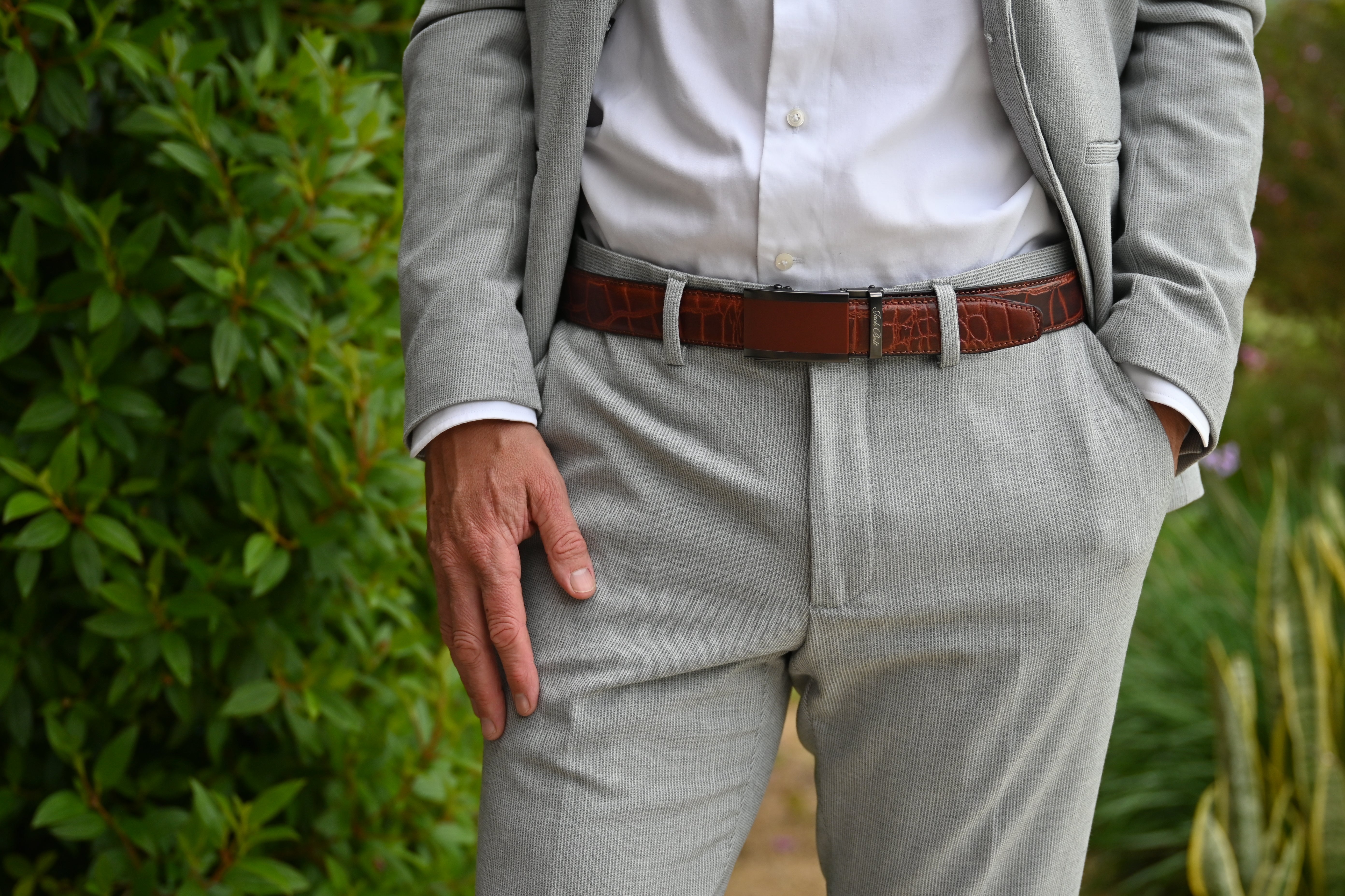 The Jackbelt® is adjustable by millimeters, not inches, so after a meal or during a long drive you can loosen the belt discreetly. The ratchet design allows you to go up and down in size discreetly with never needing to make new holes like classic belt.