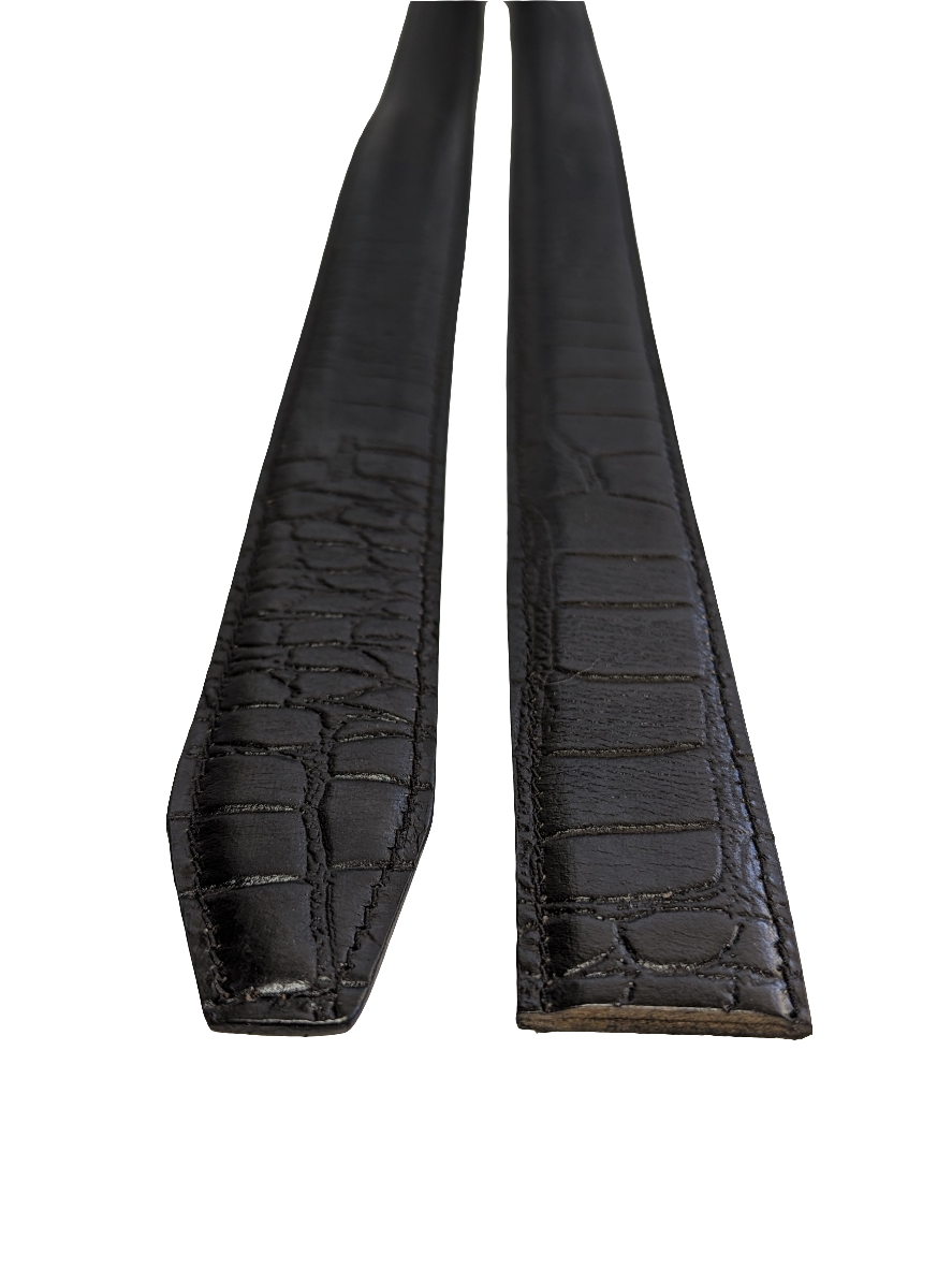 The leather has a track sewn onto the inside, designed for the tooth of the detachable ratchet buckle to catch securely on.
