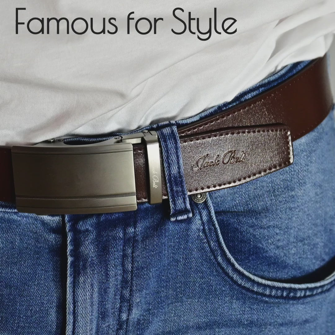 The Jack Belt® features our legendary no holes ratchet adjustment system, delivering a secure customised, discreet fit every time. No belt holes, just smooth, effortless, easy adjustments on the go.